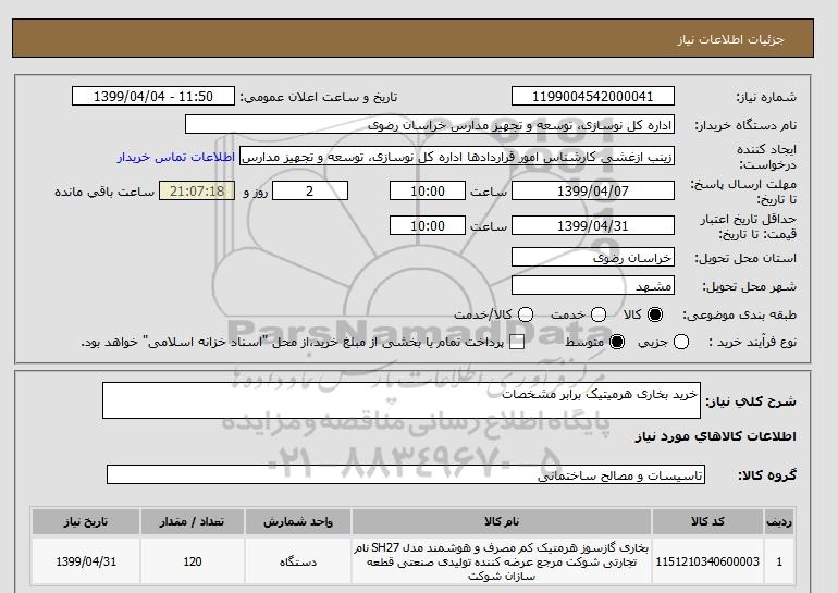 نام دستگاه خریدار:اداره کل نوسازی، توسعه و تجهیز مدارس خراسان رضوی