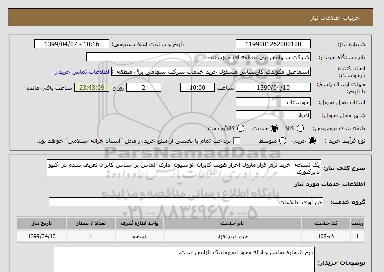 نام دستگاه خریدار:شرکت سهامی برق منطقه ای خوزستان