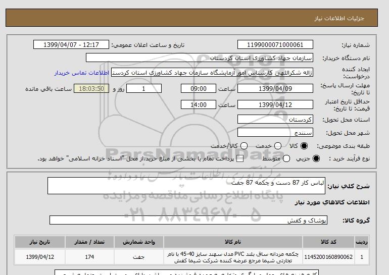 استعلام لباس کار 87 دست و چکمه 87 جفت, استعلام لباس کار 87 دست و چکمه 87 جفت