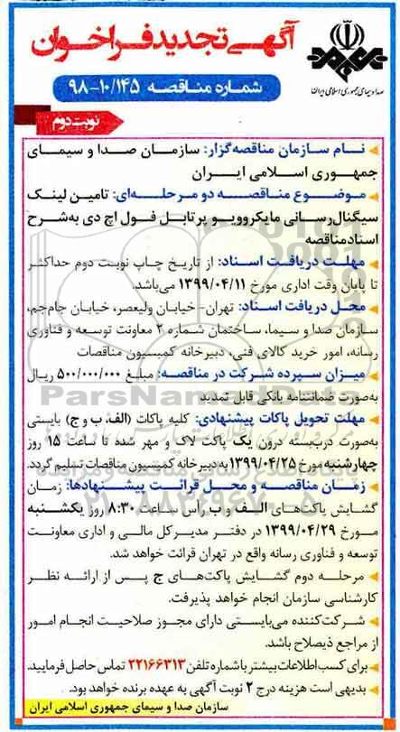 نام سازمان مناقصه گزار: سازمان صدا و سیمای جمهوری اسلامی ایران