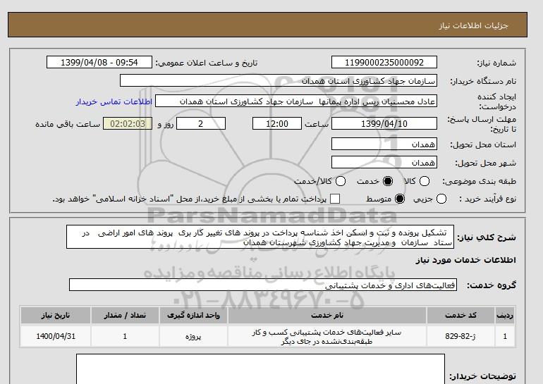 استعلام تشکیل پرونده و ثبت و اسکن اخذ شناسه پرداخت در پروند های تغییر کار بری پروند های امور اراضی در ستاد سازمان و مدیریت جهاد کشاورزی شهرستان همدان , استعلام تشکیل پرونده و ثبت و اسکن اخذ شناسه پرداخت در پروند های تغییر کار بری پروند های امور اراضی در ستاد سازمان و مدیریت جهاد کشاورزی شهرستان همدان
