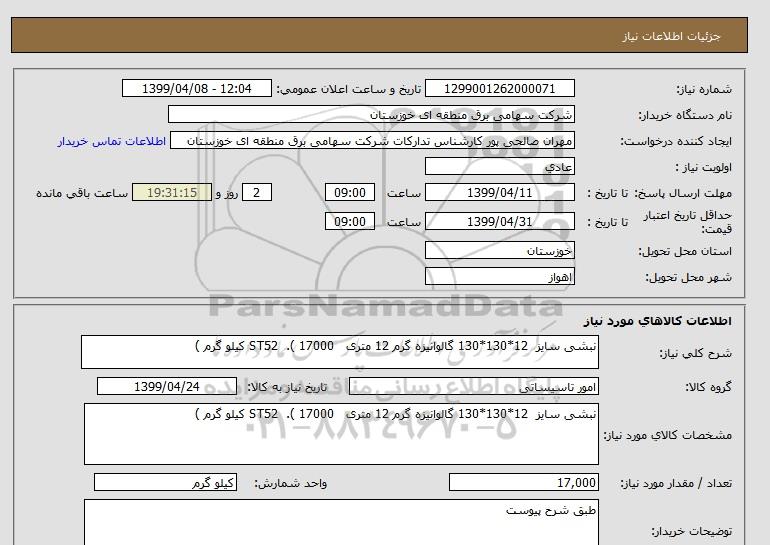 نام دستگاه خریدار:شرکت سهامی برق منطقه ای خوزستان