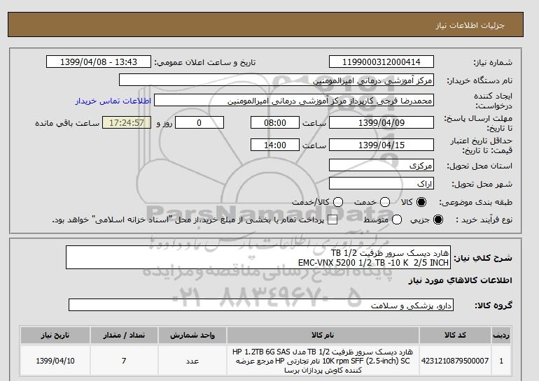 شرح کلی نیاز: هارد دیسک سرور ظرفیت 1/2 TB