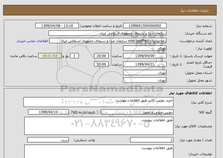 نام دستگاه خریدار:سازمان صدا و سیمای جمهوری اسلامی ایران