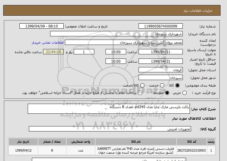 استعلام راکت بازرسی مارک چایا مدل pd240 تعداد 8 دستگاه, استعلام راکت بازرسی مارک چایا مدل pd240 تعداد 8 دستگاه