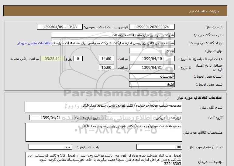 شرح کلی نیاز: مجموعه شفت موتور(چرخدنده) کلید هوایی پارس سویچ مدلBCM