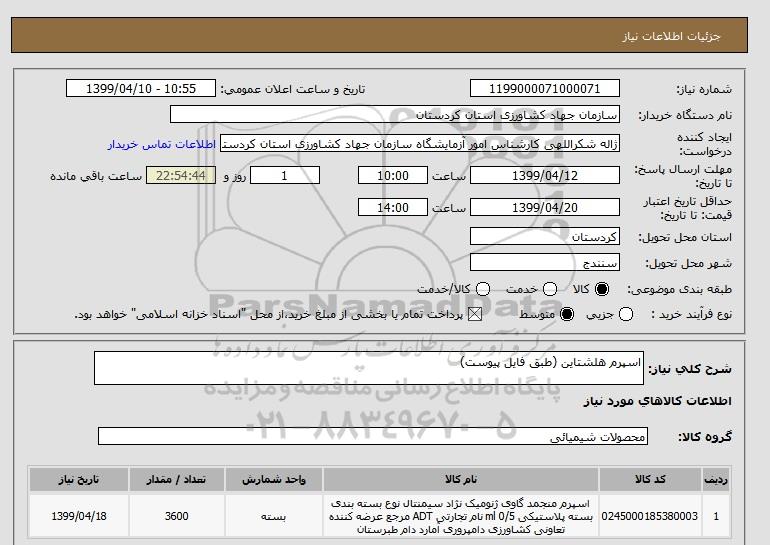 نام دستگاه خریدار:سازمان جهاد کشاورزی استان کردستان