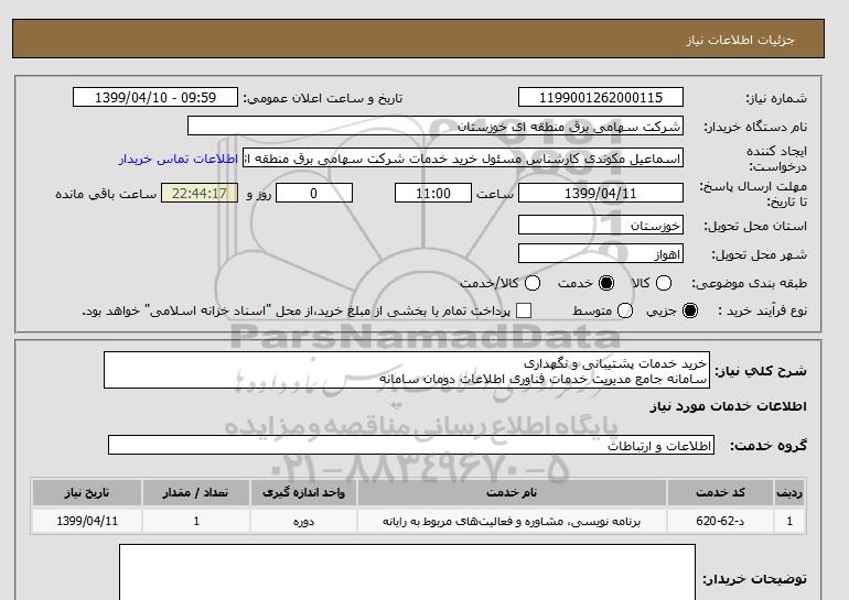 شرح کلی نیاز: خرید خدمات پشتیبانی و نگهداری