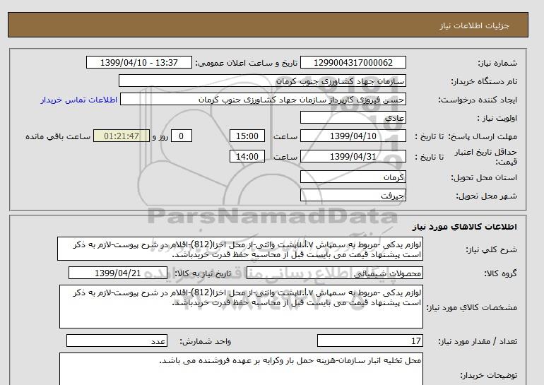 نام دستگاه خریدار:سازمان جهاد کشاورزی جنوب کرمان
