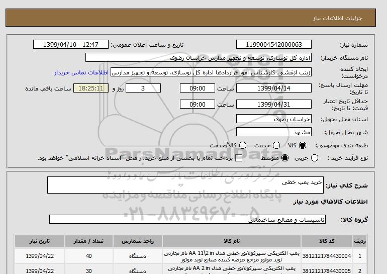نام دستگاه خریدار:اداره کل نوسازی، توسعه و تجهیز مدارس خراسان رضوی