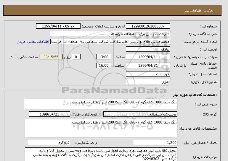 نام دستگاه خریدار:شرکت سهامی برق منطقه ای خوزستان