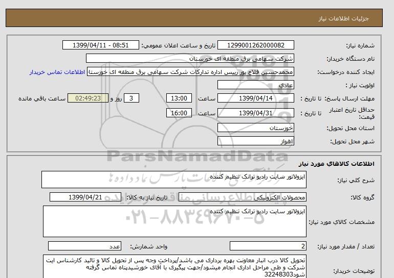 نام دستگاه خریدار:شرکت سهامی برق منطقه ای خوزستان