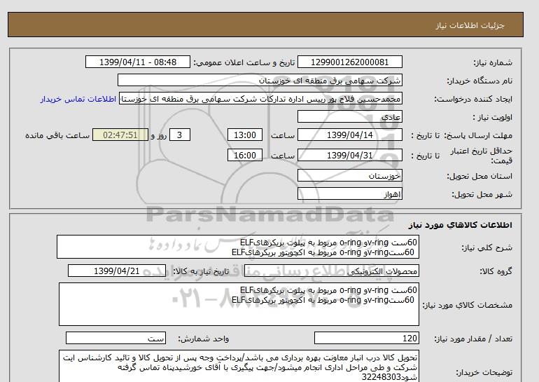 نام دستگاه خریدار:شرکت سهامی برق منطقه ای خوزستان