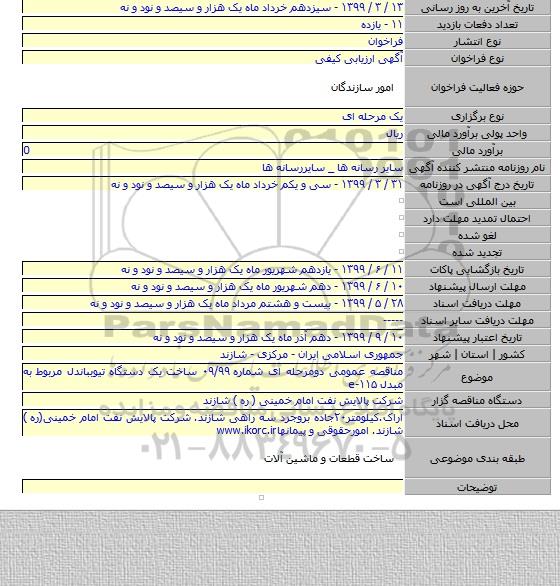مناقصه عمومی دومرحله ای شماره ۰۹/۹۹ ساخت یک دستگاه تیوبباندل مربوط به مبدل e-۱۱۵