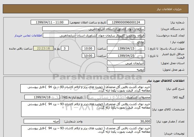 نام دستگاه خریدار:سازمان جهاد کشاورزی استان آذربایجانغربی