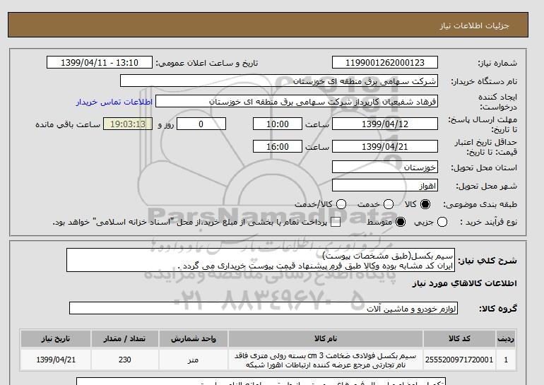 شرح کلی نیاز: سیم بکسل(طبق مشخصات پیوست)