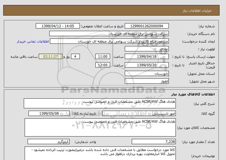 مشخصات کالای مورد نیاز: هادی هاگ ACSR/AW طبق مشخصات فنی و خصوصی پیوست