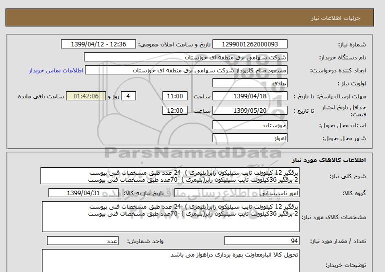 نام دستگاه خریدار:شرکت سهامی برق منطقه ای خوزستان