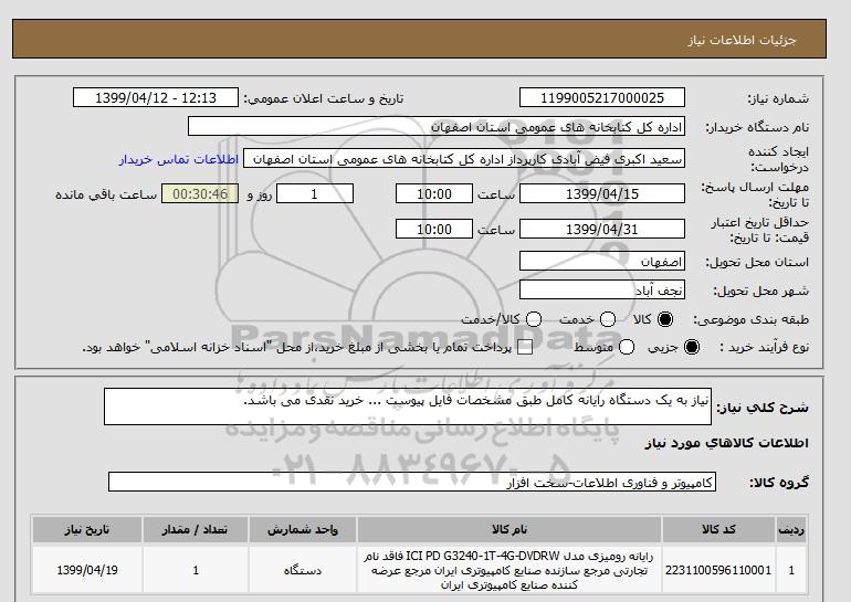 نام دستگاه خریدار:اداره کل کتابخانه های عمومی استان اصفهان