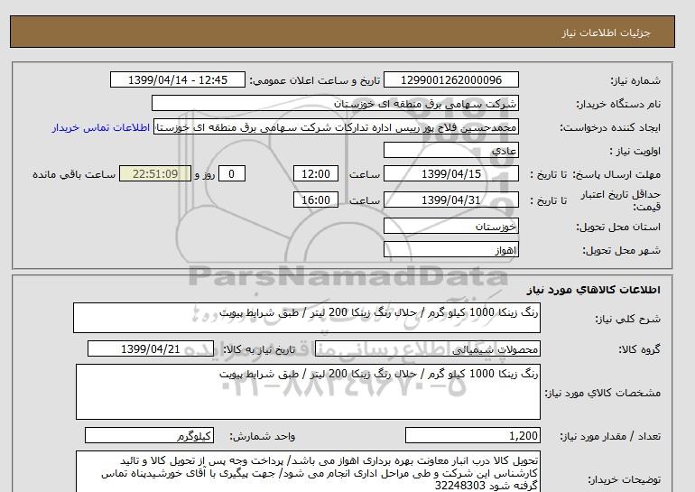 استعلام رنگ زینکا 1000 کیلو گرم / حلال رنگ زینکا 200 لیتر / طبق شرایط پیویت , استعلام رنگ زینکا 1000 کیلو گرم / حلال رنگ زینکا 200 لیتر / طبق شرایط پیویت