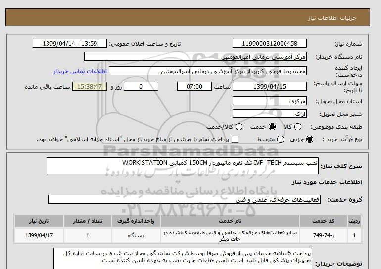 استعلام نصب سیستم IVF TECH تک نفره مانیتوردار 150CM کمپانی WORK STATION, استعلام نصب سیستم IVF TECH تک نفره مانیتوردار 150CM کمپانی WORK STATION
