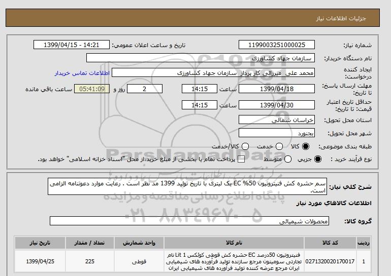 نام دستگاه خریدار: سازمان جهاد کشاورزی