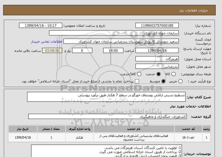 شرح کلی نیاز: تسطیح نسبی اراضی روستای خورگو در سطح 7 هکتار طبق برآورد پیوستی