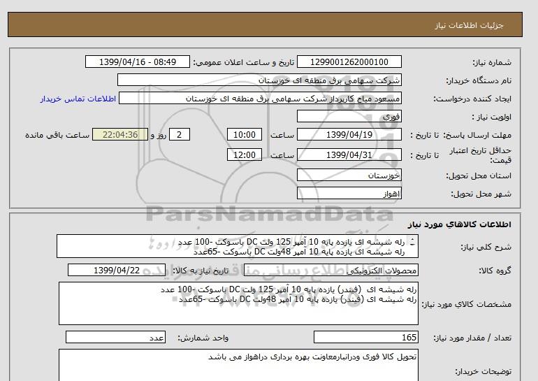 نام دستگاه خریدار:شرکت سهامی برق منطقه ای خوزستان