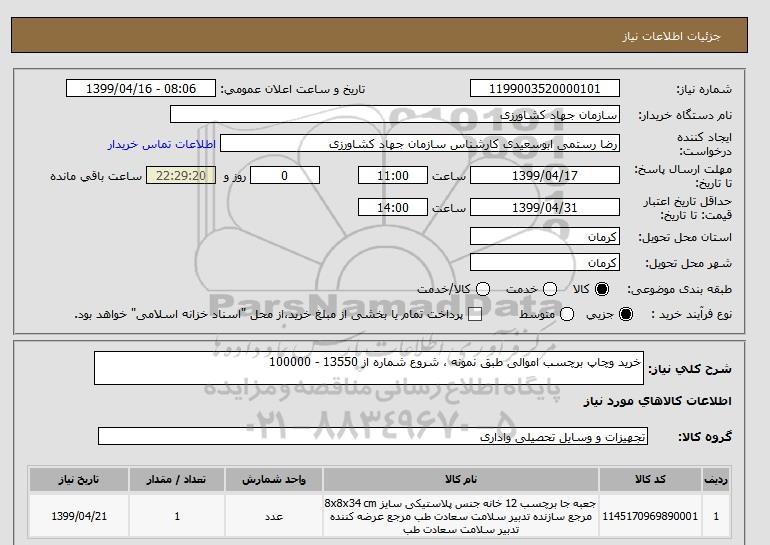شرح کلی نیاز: خرید وچاپ برچسب اموالی طبق نمونه ، شروع شماره از 13550 - 100000