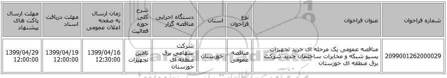 مناقصه، مناقصه عمومی یک مرحله ای خرید تجهیزات پسیو شبکه و مخابرات ساختمان جدید شرکت برق منطقه ای خوزستان, مناقصه عمومی یک مرحله ای خرید تجهیزات پسیو شبکه و مخابرات ساختمان جدید شرکت برق منطقه ای خوزستان