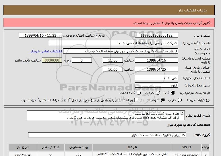 شرح کلی نیاز: هارد سرور(طبق شرایط پیوست) ایران کد مشابه بوده وکالا طبق فرم پیشنهاد قیمت پیوست خریداری می گردد .