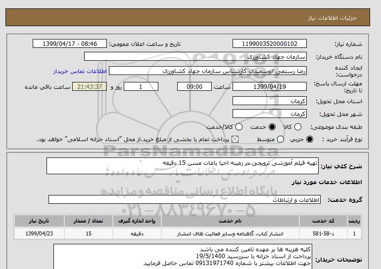 شرح کلی نیاز: تهیه فیلم آموزشی ترویجی در زمینه احیا باغات مسن 15 دقیقه