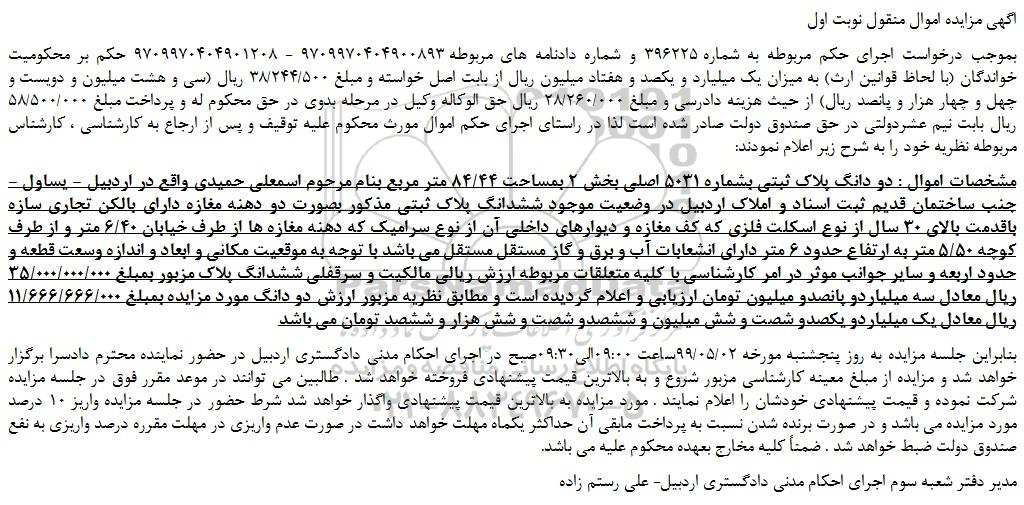 شعبه صادر کننده:شعبه سوم اجرای احکام مدنی دادگستری شهرستان اردبیل