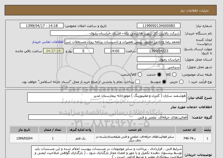 نام دستگاه خریدار:شرکت پالایش گاز شهید هاشمی نژاد - استان خراسان رضوی