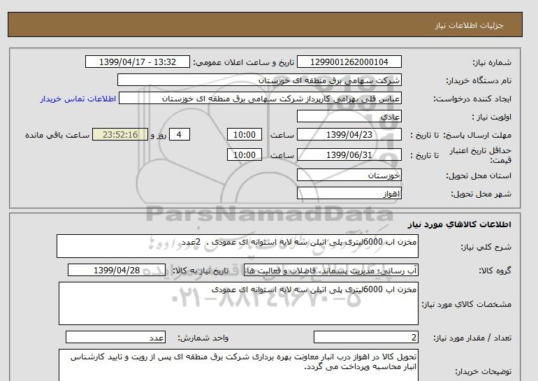 نام دستگاه خریدار:شرکت سهامی برق منطقه ای خوزستان