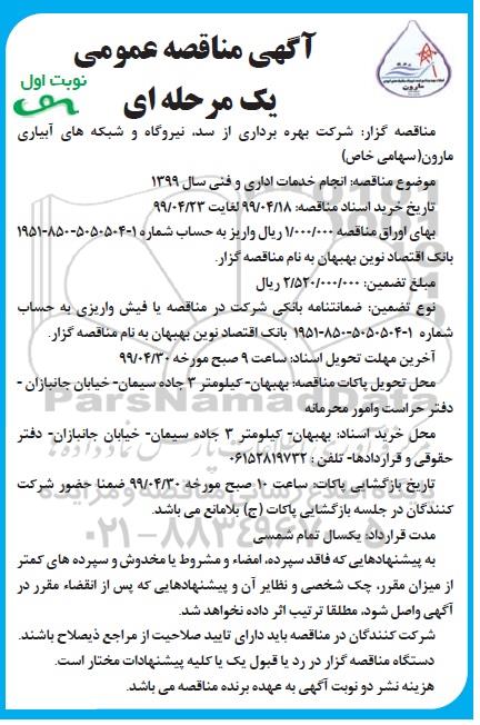 موضوع مناقصه : انجام خدمات اداری و فنی سال 1399