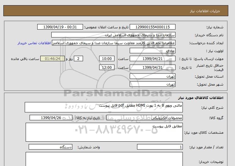 نام دستگاه خریدار:سازمان صدا و سیمای جمهوری اسلامی ایران