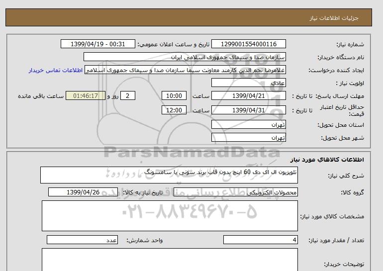 نام دستگاه خریدار:سازمان صدا و سیمای جمهوری اسلامی ایران