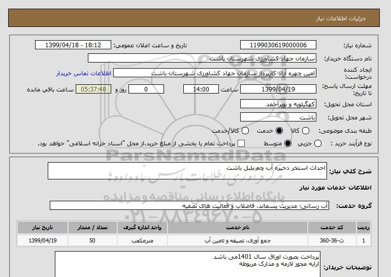 شرح کلی نیاز: احداث استخر ذخیره آب چم بلبل باشت