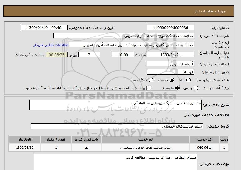 شرح کلی نیاز: مشاور انتظامی -مدارک پیوستی مطالعه گردد