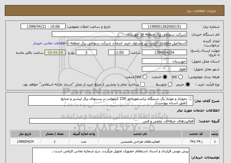 استعلام دمونتاژ و مونتاژ یک دستگاه ترانسفورماتور 230 کیلوولت در پستهای برق لیشتر و صنایع (طبق اسناد پیوست) , استعلام دمونتاژ و مونتاژ یک دستگاه ترانسفورماتور 230 کیلوولت در پستهای برق لیشتر و صنایع (طبق اسناد پیوست)