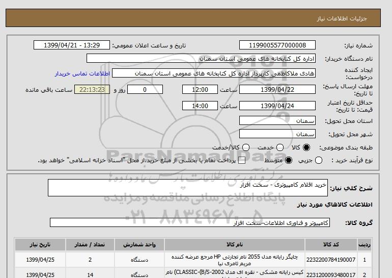 نام دستگاه خریدار:اداره کل کتابخانه های عمومی استان سمنان