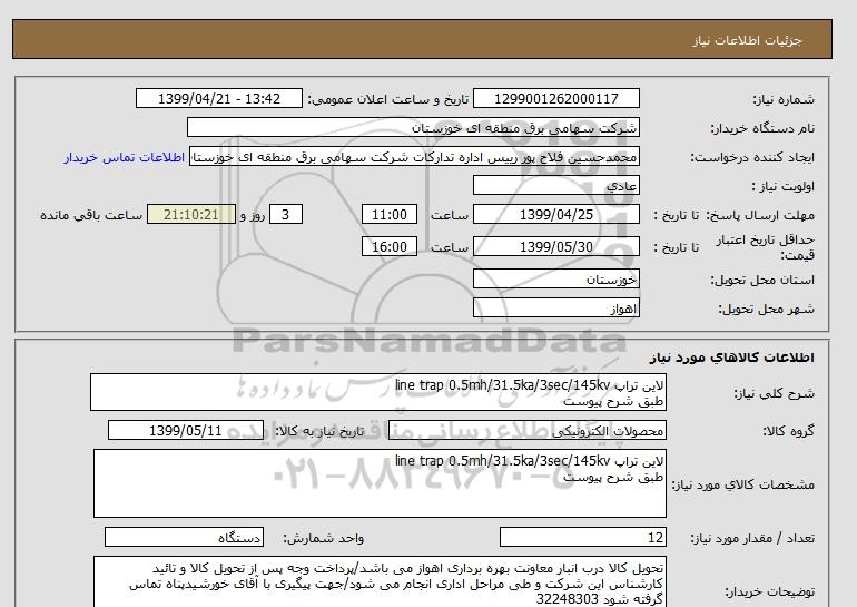 نام دستگاه خریدار:شرکت سهامی برق منطقه ای خوزستان