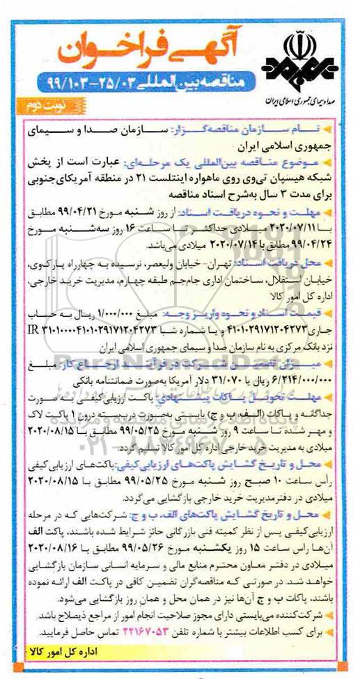 - نام سازمان مناقصه گزار: سازمان صدا و سیمای جمهوری اسلامی ایران