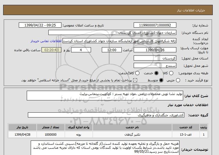 استعلام تولید نشا توپی محصولات زراعی .مواد تهیه بستر : کوکوپیت،پیتماس،پرلیت, استعلام تولید نشا توپی محصولات زراعی .مواد تهیه بستر : کوکوپیت،پیتماس،پرلیت