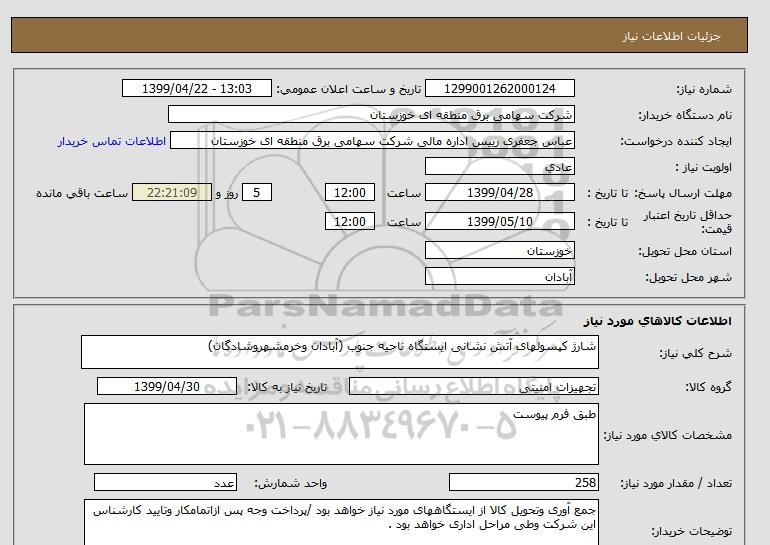 استعلام شارژ کپسولهای آتش نشانی ایستگاه ناحیه جنوب (آبادان وخرمشهروشادگان), استعلام شارژ کپسولهای آتش نشانی ایستگاه ناحیه جنوب (آبادان وخرمشهروشادگان)