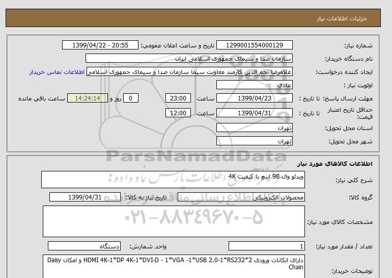 نام دستگاه خریدار:سازمان صدا و سیمای جمهوری اسلامی ایران