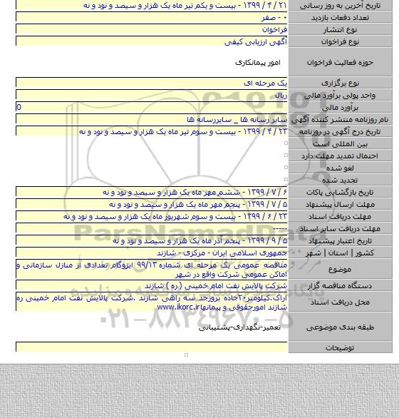 مناقصه عمومی یک مرحله ای شماره ۹۹/۱۳ ایزوگام تعدادی از منازل سازمانی و اماکن عمومی شرکت واقع در شهر