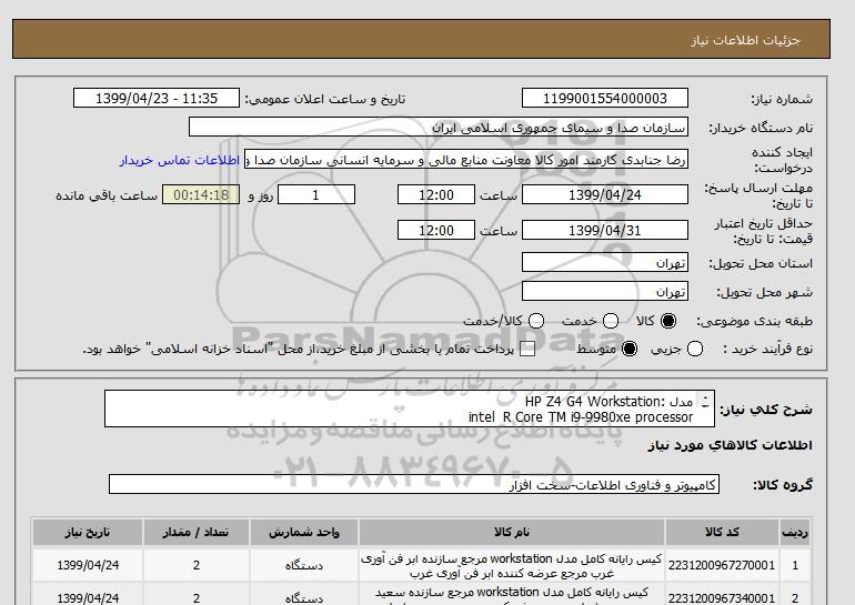 شرح کلی نیاز: مدل :HP Z4 G4 Workstation