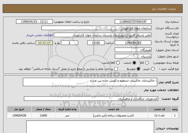شرح کلی نیاز: : خاکبرداری، خاکریزی، تسطیح و کوبش جاده بین مزارع